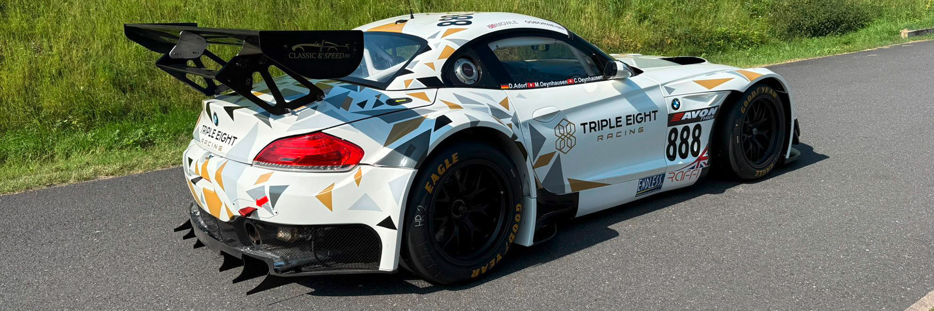 The von Oeyenhausen Z4 is an ex-Triple Eight chassis, which raced in British GT during a halcyon era for the championship. The Z4 was the first GT3-spec BMW built in-house, and achieved success across the world from 2010-2015. On the historic GT3 scene, the car is popular with paddocks and spectators alike, thanks to its ferocious 4.4-litre V8.